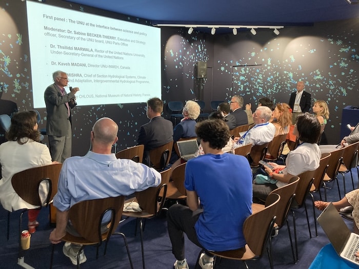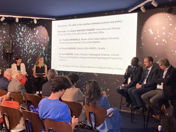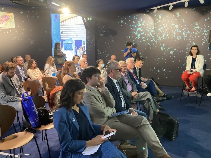 Photos du Side Event “Appel pour un institut de l’Université des Nations Unies dédié à “science et gouvernance de l’océan et des littoraux » du 7 juin 2025 au pavillon “Au delà des frontières, Océan d’Avenir” co-porté par l’UNESCO et l’Office français de la biodiversité. © J.Richard.